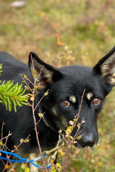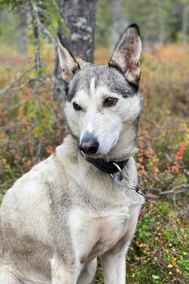 Blåmann er ingen vanlig hund - han er superhunden. Kraftig og intelligent, han fører flokken med selvsikkerhet, men han har ingen problemer med å gi alt fra baksiden av spannet der de sterkeste hundene trenger å være. Blåmann er en født leder, men det betyr ikke at han alltid følger instruksjonene til punkt og prikke. Noen ganger bestemmer han seg for at det er han som skal bestemme hvor vi skal på tur, og plutselig endrer han retning! Men det er bare en del av sjarmen hans - for hvem kan motstå en hund med så mye personlighet og eventyrlyst? Han har mange løp i sin portefølje, som Finnmarksløpet, Femundløpet og andre kortere distanser.